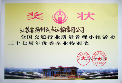 全國交通行業(yè)質(zhì)量管理小組活動二十七周年優(yōu)秀企業(yè)特別獎(jiǎng)獎(jiǎng)狀
