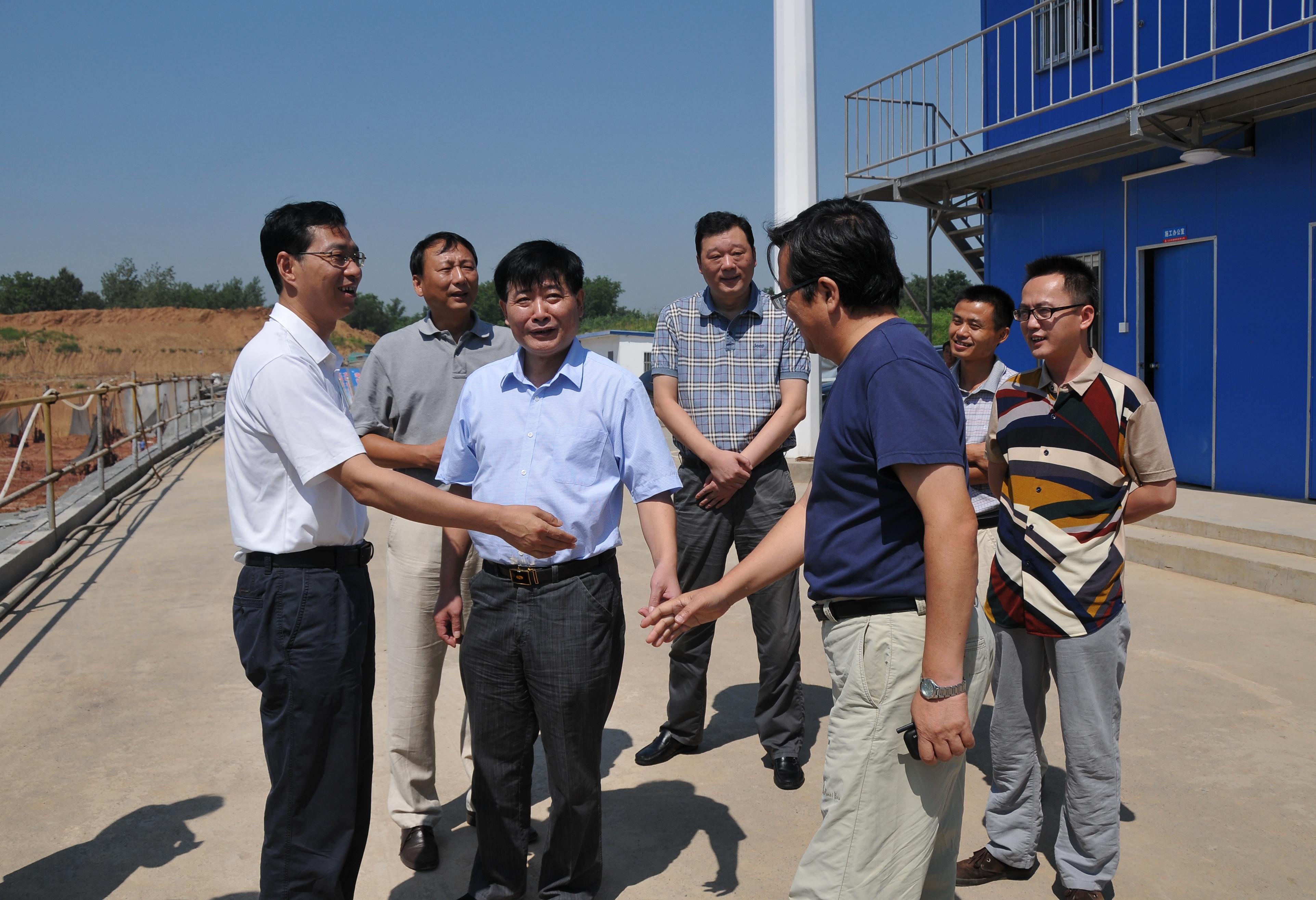 8月7日上午,市交通產(chǎn)業(yè)集團(tuán)新任董事長(zhǎng)、總經(jīng)理、黨委書記周正權(quán),副總經(jīng)理王寧生、王進(jìn)一行,頂著烈日,冒著高溫,來(lái)到揚(yáng)州西部交通客運(yùn)樞紐建設(shè)工地,慰問(wèn)堅(jiān)守在一線的工程建設(shè)者,并送上飲料和慰問(wèn)金。集團(tuán)公司總經(jīng)理、黨委書記吳忠俊匯報(bào)了工程建設(shè)進(jìn)展情況。