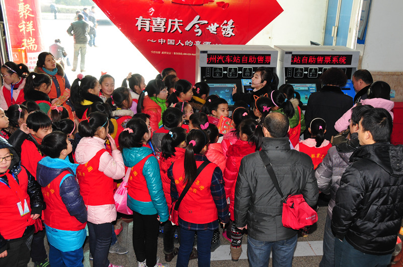 1月22日,來自揚(yáng)州報(bào)業(yè)傳媒集團(tuán)的60多名小記者來到揚(yáng)州汽車站,觀看了GPS監(jiān)控中心、售票大廳和自助售票機(jī)工作情況,體驗(yàn)了車站安檢、檢票工作,并采訪了揚(yáng)汽集團(tuán)總經(jīng)理、黨委書記吳忠俊……他們在現(xiàn)場親身體會(huì)了繁忙而和諧的2014年春運(yùn)。