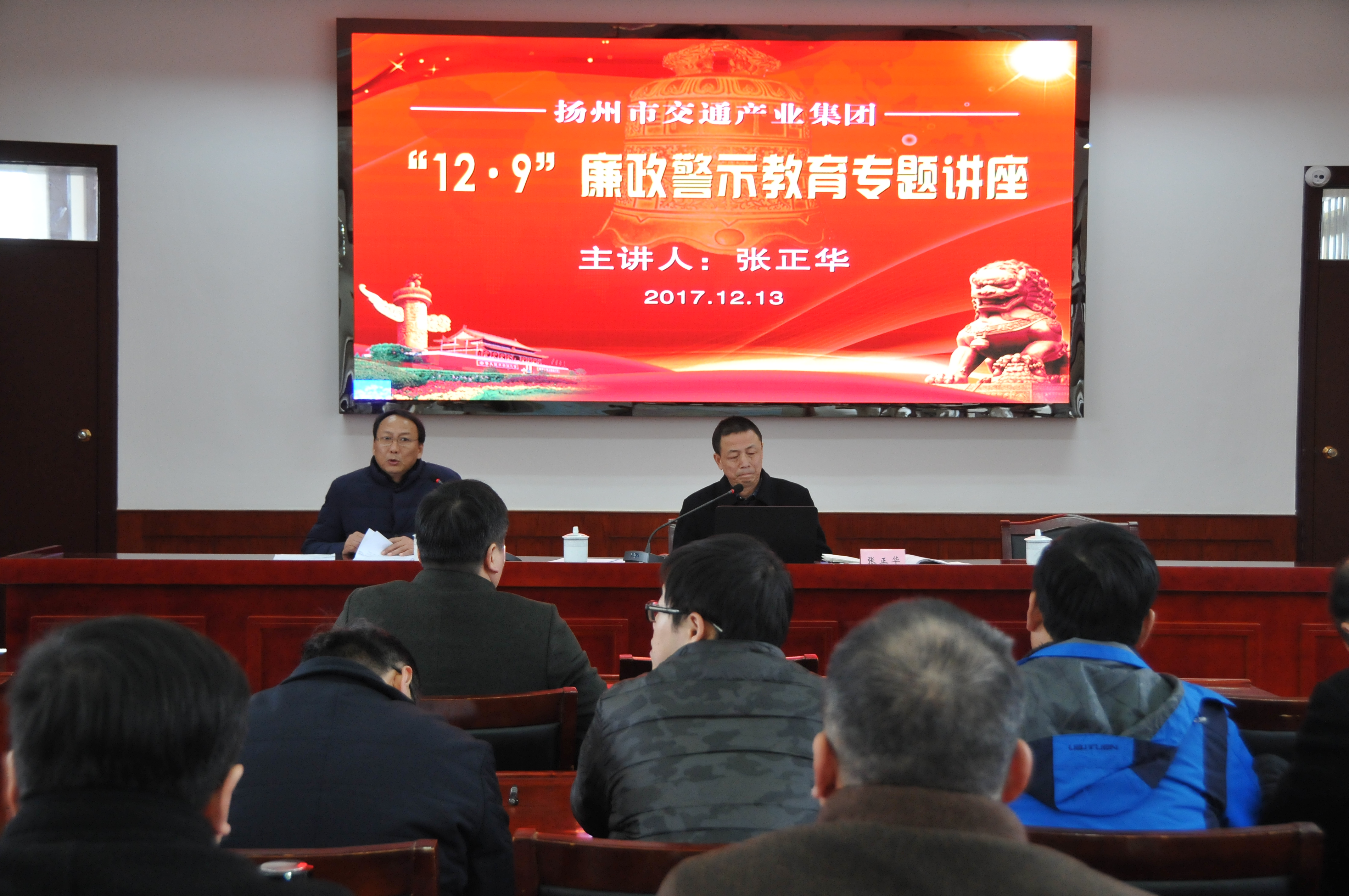 12月13日下午,市交通產(chǎn)業(yè)集團在市級機關(guān)工委黨校舉辦“12.9”廉政警示教育專題講座;顒佑山煌óa(chǎn)業(yè)集團黨委副書記王寧生主持,邀請市紀委第十派駐紀檢組組長張正華主講,系統(tǒng)內(nèi)黨員干部近百人現(xiàn)場聆聽講座。揚汽集團總經(jīng)理、黨委書記曹遠志等班子成員及各部門、單位黨政負責人30余人參加活動。