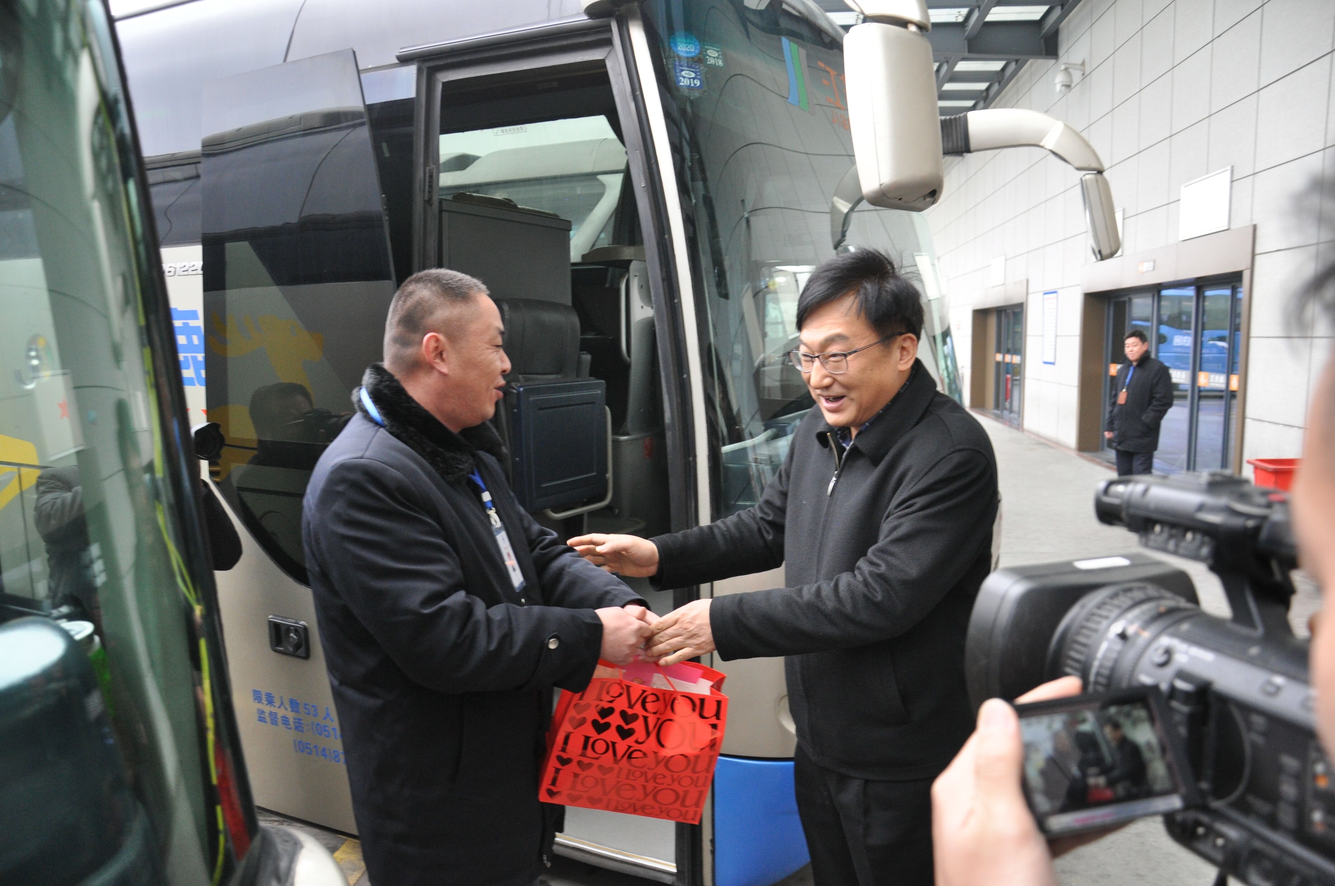 會議結(jié)束后,丁市長一行前往公交和揚(yáng)汽的場站,對一線駕駛服務(wù)人員進(jìn)行慰問。丁市長還登上揚(yáng)汽的大巴車,給旅客送上了象征吉祥如意的桔子,祝福大家一路平安,闔家幸福。