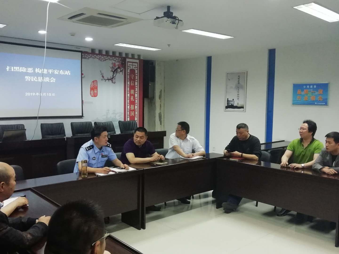 2019年5月15日上午9點(diǎn)30分,東站召開掃黑除惡專題工作動(dòng)員大會(huì),東站支部書記、管理人員、班組長和超市及賓館等商戶參加了會(huì)議,會(huì)議由揚(yáng)州市公安局公交分局東站派出所所長李方民主持。