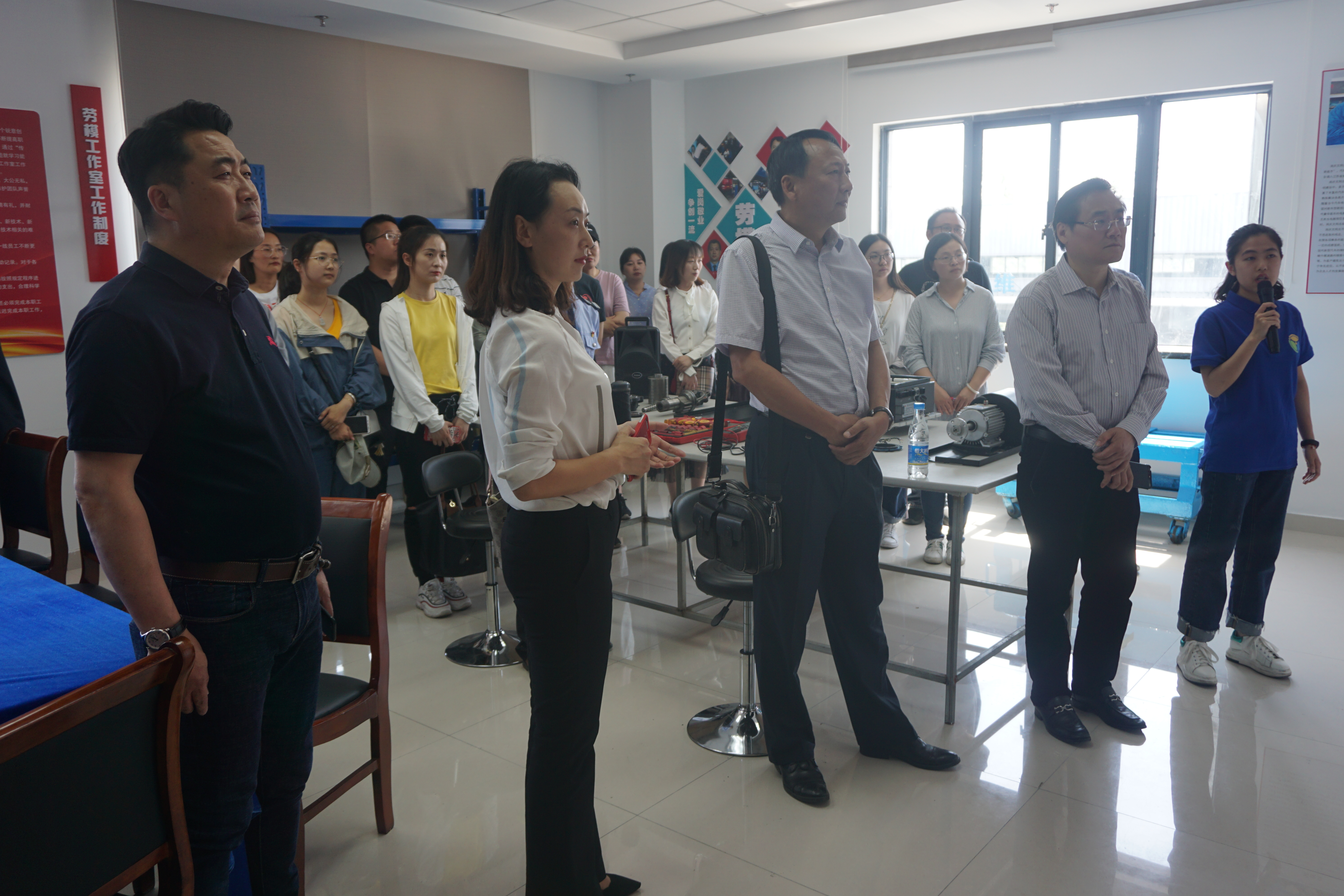 上午,青年骨干跟隨跟班勞模師父進行實崗體驗學習。下午,勞模們和青年骨干在國資委副調(diào)研員王寧生、市交通產(chǎn)業(yè)集團黨委辦主任呂進、副主任杜璽瓊的帶領(lǐng)下,來到修理廠,實地參觀了揚汽集團修理廠勞模創(chuàng)新工作室,通過現(xiàn)場介紹,使廣大青年骨干對勞模創(chuàng)新工作室的工作理念、創(chuàng)建成果、工作實效、機制載體等方面有了具體的認識,對勞模創(chuàng)新工作室在加速職工成才、技術(shù)創(chuàng)新等方面所發(fā)揮的引領(lǐng)作用有了全新的理解。