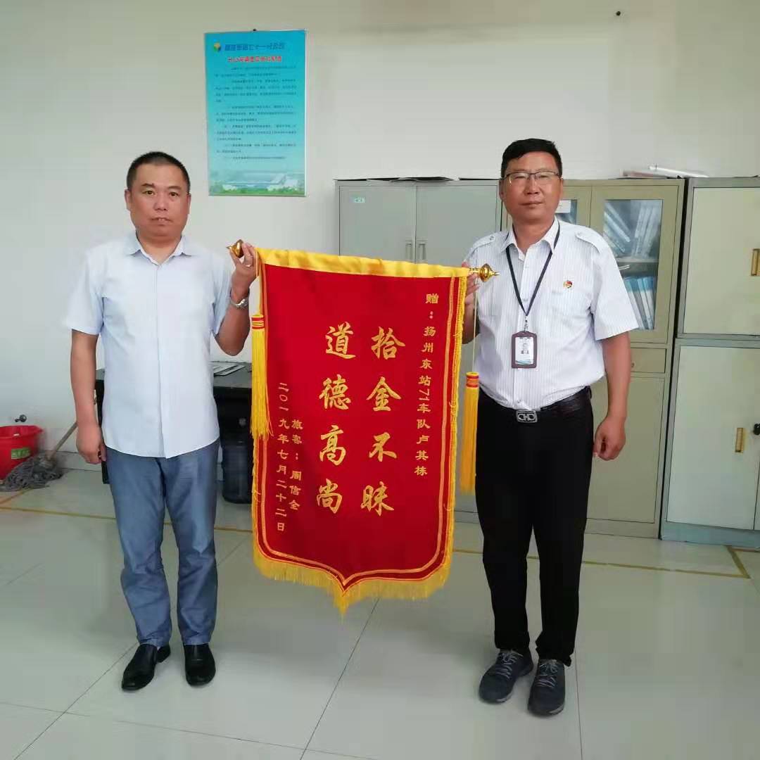 7月29日上午,揚州汽車客運東站收到旅客周信全送來的錦旗,稱贊駕駛員盧其棟“拾金不昧,道德高尚”。據(jù)了解,7月20日上午7點,旅客周信全不慎將包遺忘在了從揚州東站到南京的車上,包里有身份證、銀行卡、現(xiàn)金以及其他個人物品。當日值班駕駛員盧其棟在車輛抵達南京車站后,在檢查打掃過程中,發(fā)現(xiàn)了周信全遺失的挎包,并將此事及時上報調(diào)度室,并于第二日交還該旅客。