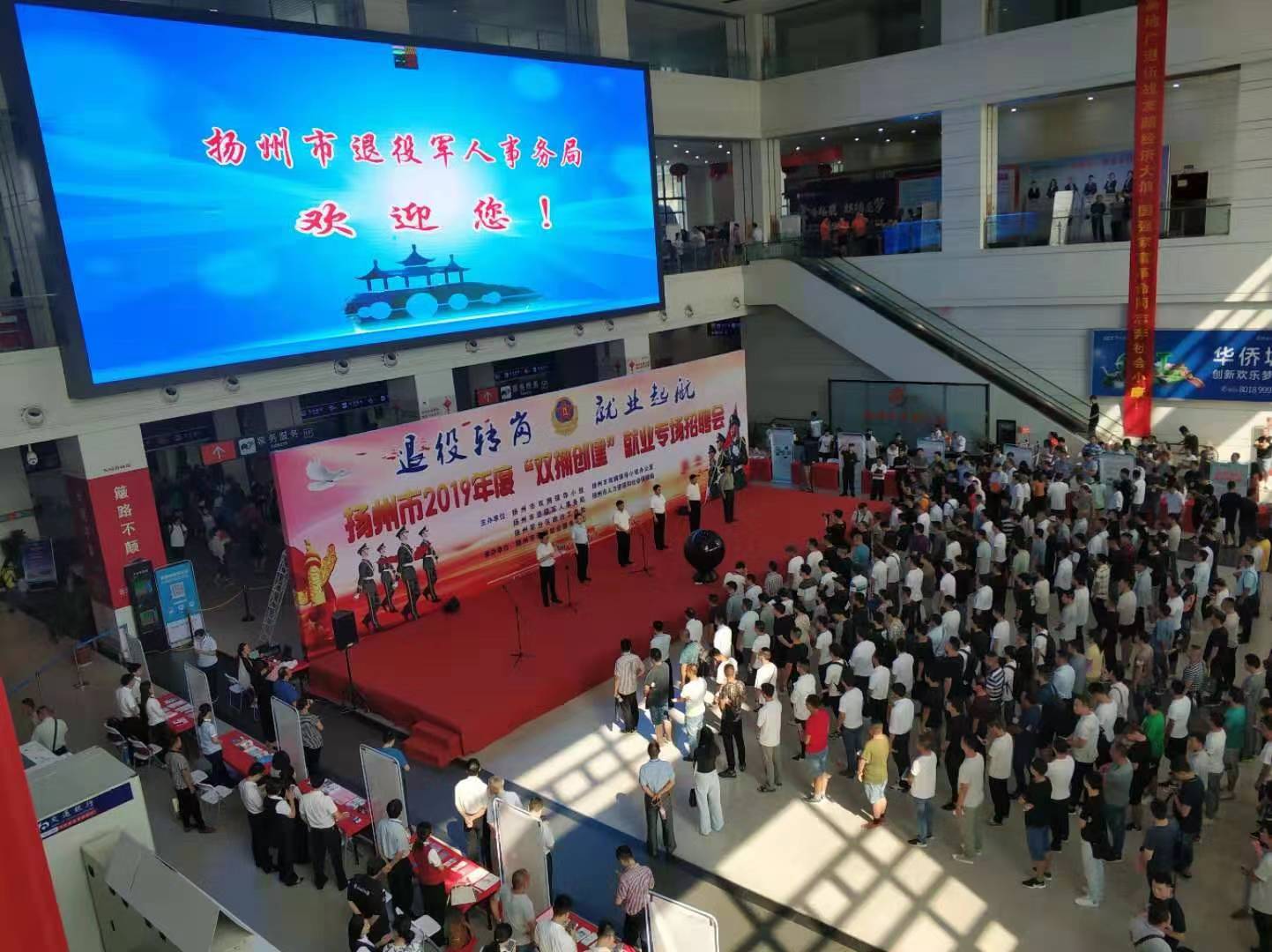 8月17日上午,揚州市2019年度“雙擁創(chuàng)建”就業(yè)專場招聘會在揚州西部客運樞紐揚州汽車站一樓大廳舉辦。會場設置50多個招聘席位,計劃安排1500個就業(yè)崗位,1200余名退役軍人及隨軍家屬參加現(xiàn)場招聘。招聘活動由揚州市雙擁領導小組、揚州市退役軍人事務局、揚州軍分區(qū)、揚州市人社局聯(lián)合主辦,旨在拓寬退役軍人就業(yè)渠道,為退役軍人和企業(yè)之間搭建起互通橋梁。