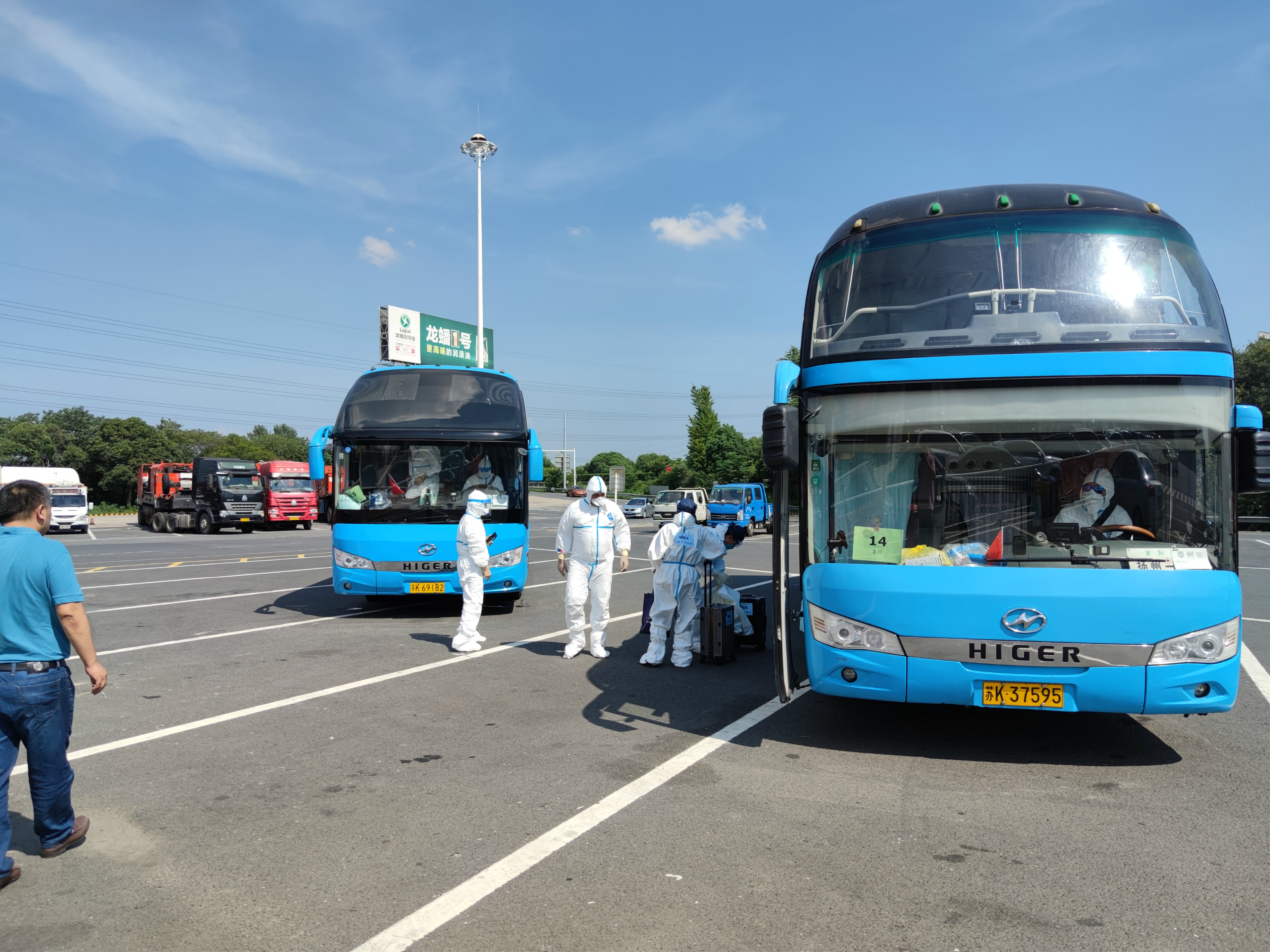 當(dāng)天氣溫達(dá)到36度,機(jī)坪溫度更是超過(guò)50度,在這種酷暑下,駕駛員全身穿戴密閉的防護(hù)服,對(duì)行車安全是巨大的挑戰(zhàn)。龔宇峰董事長(zhǎng)趕赴現(xiàn)場(chǎng),再次對(duì)駕駛員抗高溫,保安全進(jìn)行了交代。中午11時(shí)40分,首批車輛從機(jī)場(chǎng)出發(fā),至14時(shí)11分最后一批車出發(fā),將二百多名境外返揚(yáng)人員運(yùn)送至相關(guān)酒店。16時(shí)50分,所有車輛圓滿完成任務(wù),回到指定地點(diǎn),接受消毒和檢測(cè)。