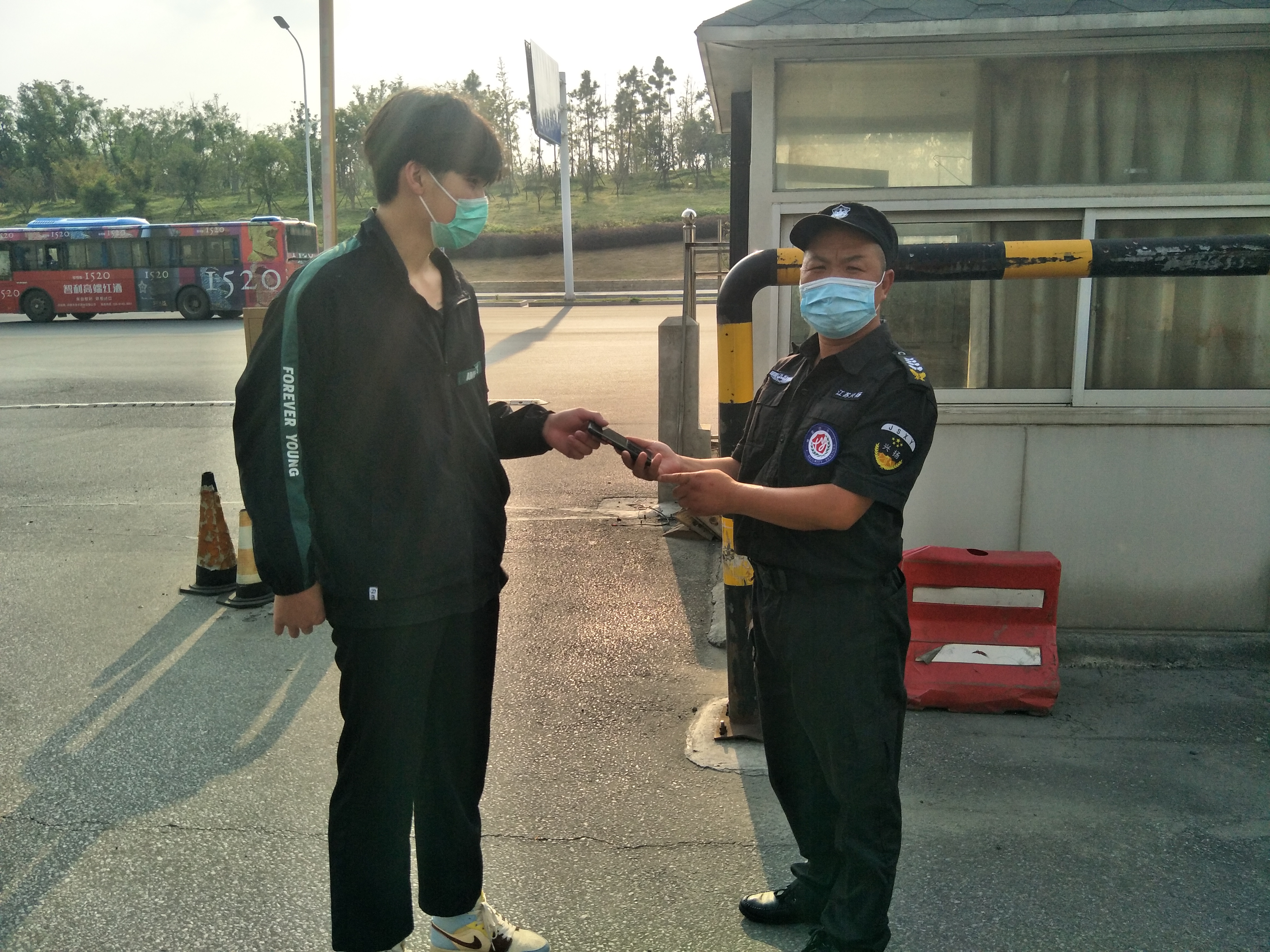揚州站工作人員陪同小阮先生來到揚州站下客區(qū)管理亭,核實身份信息,在確定無誤后將手機予以交還,小伙子想當(dāng)面感謝駕駛員師傅,沒想到駕駛員師傅將手機送到管理亭,交由保安師傅后已經(jīng)離開了,小伙子為了不留遺憾,要求跟我們保安師傅合影,向我們那位拾金不昧做好事不留名的駕駛員師傅表示感謝。