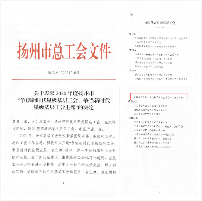 揚(yáng)汽集團(tuán)工會榮獲揚(yáng)州市“新時代五星級基層工會”稱號
