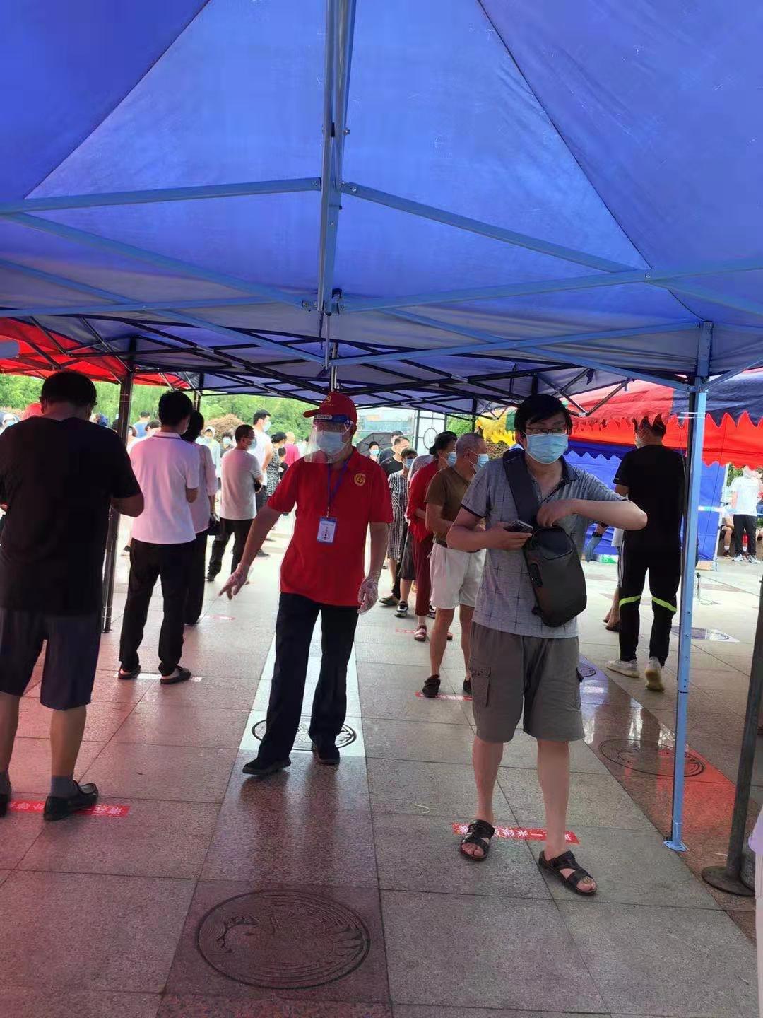 揚(yáng)州疫情爆發(fā),牽動(dòng)著每個(gè)人的心,黃建軍是揚(yáng)州站的值班站長(zhǎng),作為一名老黨員,主動(dòng)報(bào)名加入防疫阻擊戰(zhàn),于8月3日前往邗江區(qū)邗上街道進(jìn)行志愿服務(wù),深夜在臨時(shí)增加的來(lái)鶴臺(tái)廣場(chǎng)核酸檢測(cè)點(diǎn)貼地標(biāo),準(zhǔn)備各種用品,大、小垃圾桶等,協(xié)助社區(qū)做好準(zhǔn)備工作。第二天早上5點(diǎn),在五里社區(qū)來(lái)鶴臺(tái)廣場(chǎng)開(kāi)展第三次核酸檢測(cè)志愿服務(wù)工作,負(fù)責(zé)4千多戶居民的秩序維護(hù)。8月7日,他又前往邗上街道蘭莊社區(qū)望月苑核酸檢測(cè)點(diǎn)參加志愿服務(wù),用平凡的堅(jiān)守,打造戰(zhàn)“疫”路上的最強(qiáng)盾牌。