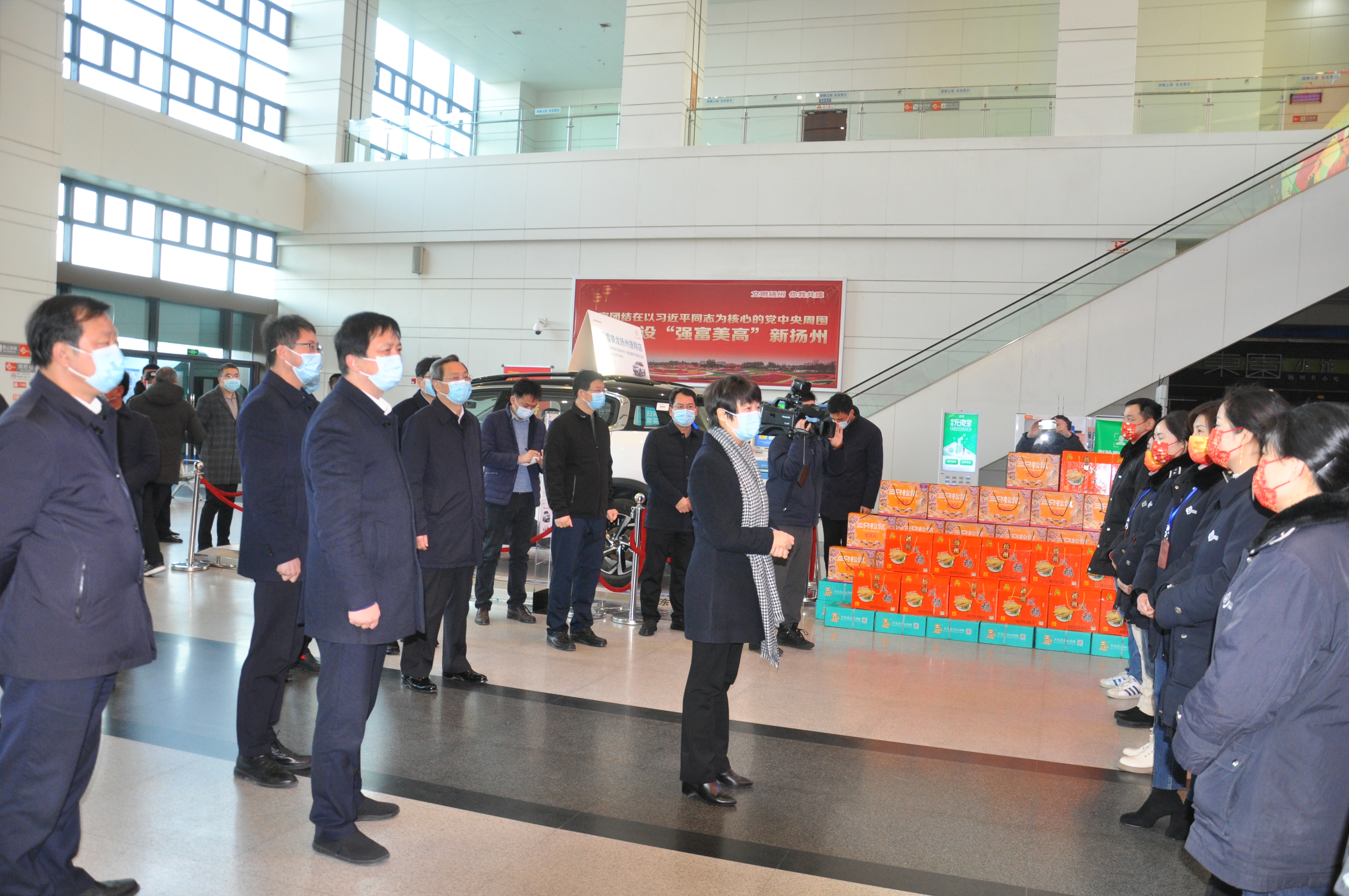 2月1日是大年初一,市委書(shū)記張寶娟一行來(lái)到西部客運(yùn)樞紐,檢查疫情防控工作,并看望慰問(wèn)奮戰(zhàn)在一線(xiàn)的工作人員,代表市委、市政府向他們表示誠(chéng)摯謝意并致以新春的美好祝福。市領(lǐng)導(dǎo)韓驊、張耀武,交通產(chǎn)業(yè)集團(tuán)黨委副書(shū)記、副董事長(zhǎng)、總經(jīng)理方璇智,交通產(chǎn)業(yè)集團(tuán)副總經(jīng)理、揚(yáng)汽集團(tuán)黨委書(shū)記、董事長(zhǎng)龔宇峰,揚(yáng)汽集團(tuán)總經(jīng)理談衛(wèi)國(guó)等及相關(guān)負(fù)責(zé)人陪同檢查。