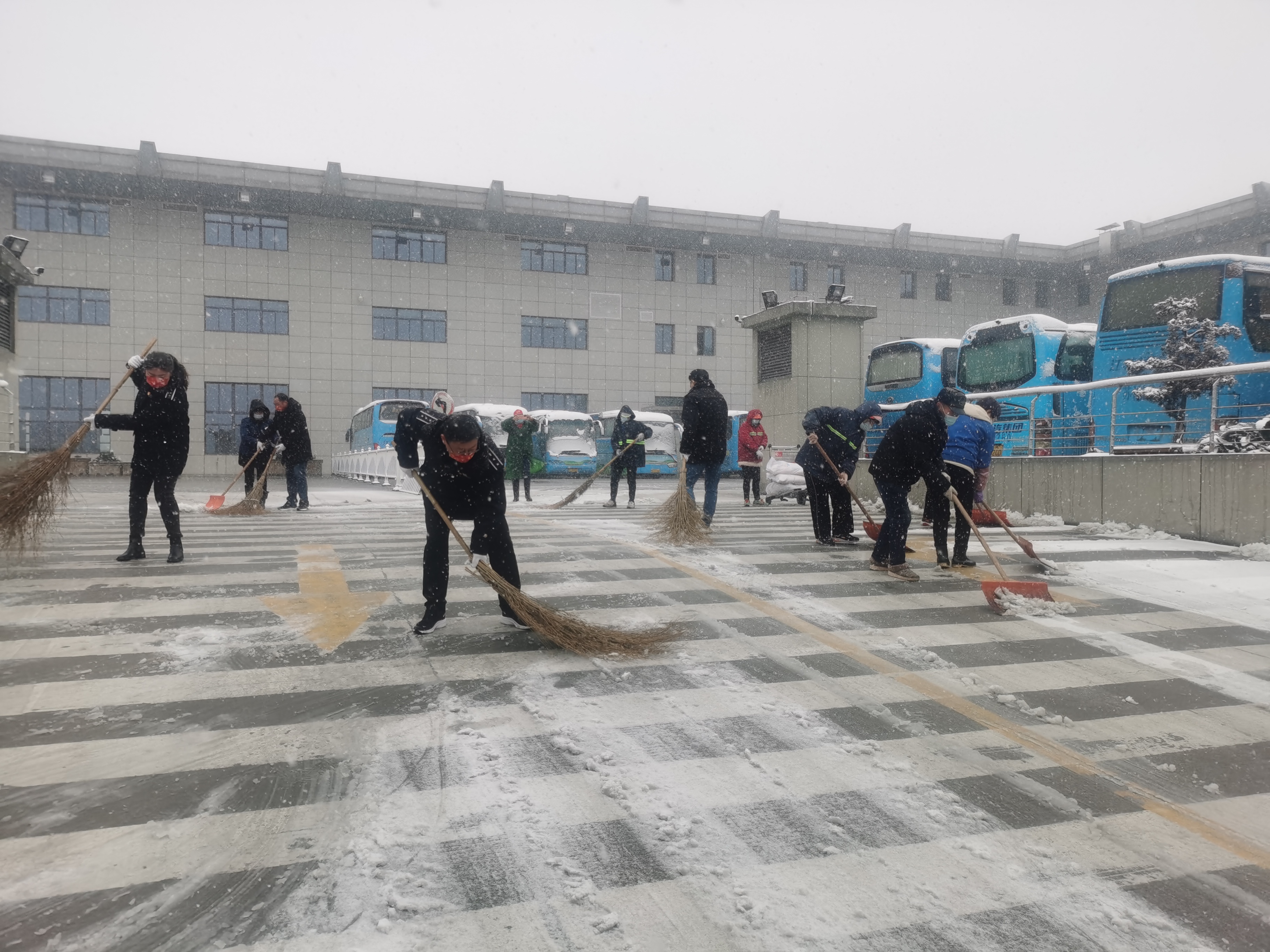 為切實(shí)做好安全保障工作,集團(tuán)各所屬單位立即啟動(dòng)冰雪惡劣天氣應(yīng)急預(yù)案,各崗位干部職工按照分工齊上陣,扛著鐵鍬、拿著大掃把、抬著麻袋融雪劑迅速到達(dá)現(xiàn)場,開始熱火朝天的“掃雪戰(zhàn)斗”。
