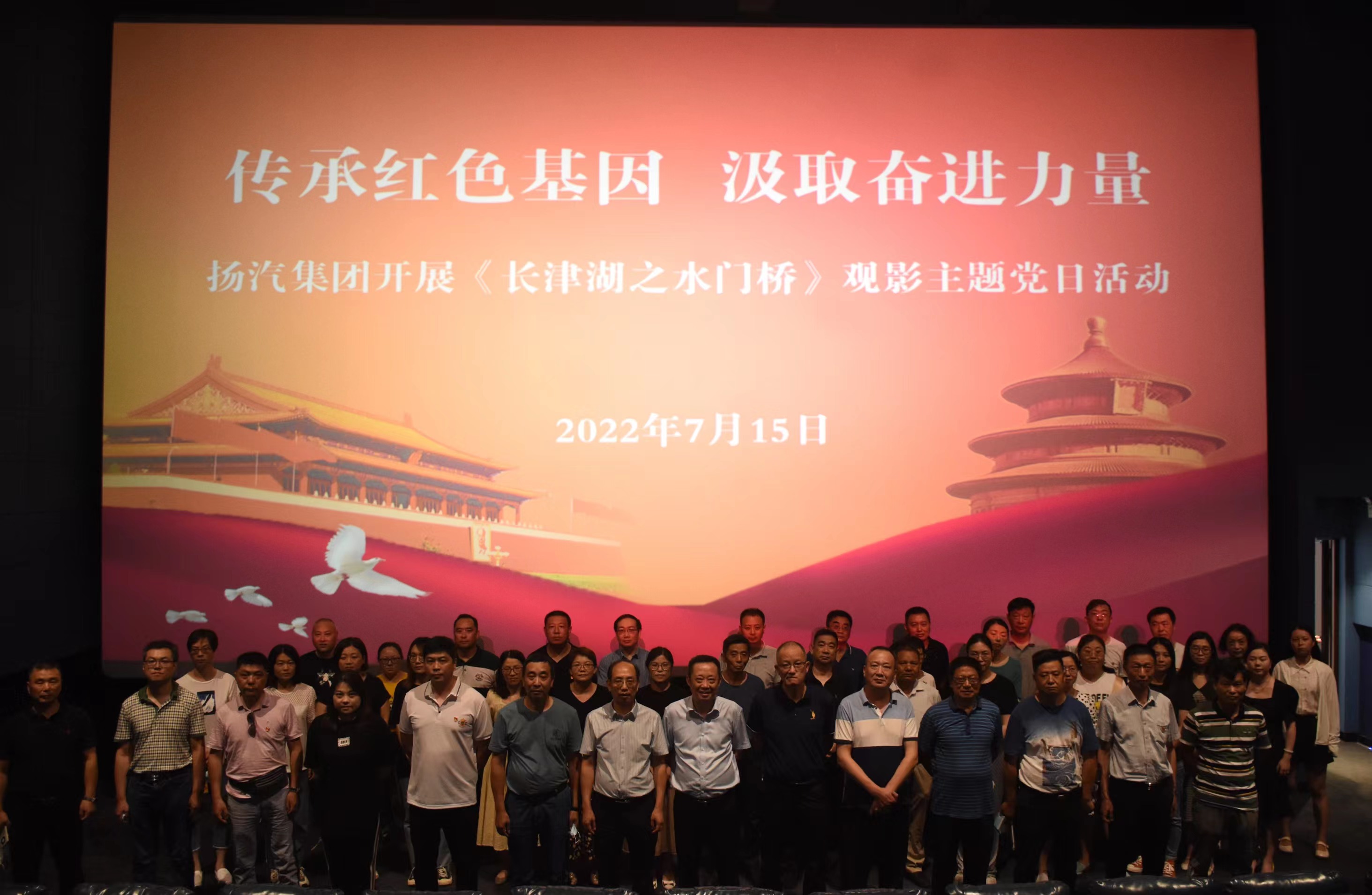 為進一步推進黨史學習教育走深走實,教育引導黨員強化黨的意識,更加堅定自覺地牢記初心使命,7月15日下午,揚汽集團開展“傳承紅色基因 汲取奮進力量”主題黨日活動,組織黨員和職工50余人集中觀看紅色電影《長津湖之水門橋》。集團領導班子成員以普通黨員身份,參加此次主題黨日觀影活動。