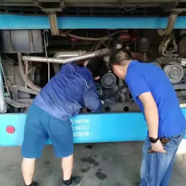 熱浪滾滾的場(chǎng)地上,已經(jīng)被汗水濕透了衣服的趙志明師傅,腳蹬保險(xiǎn)杠,趴在熱烘烘的引擎上檢修,一邊還叮囑一旁等候的校車駕駛員相關(guān)注意事項(xiàng)。