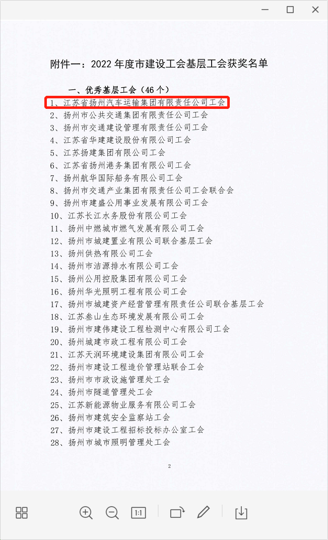 揚(yáng)汽集團(tuán)工會榮獲揚(yáng)州建設(shè)產(chǎn)業(yè)工會“優(yōu)秀基層工會”通報(bào)表彰