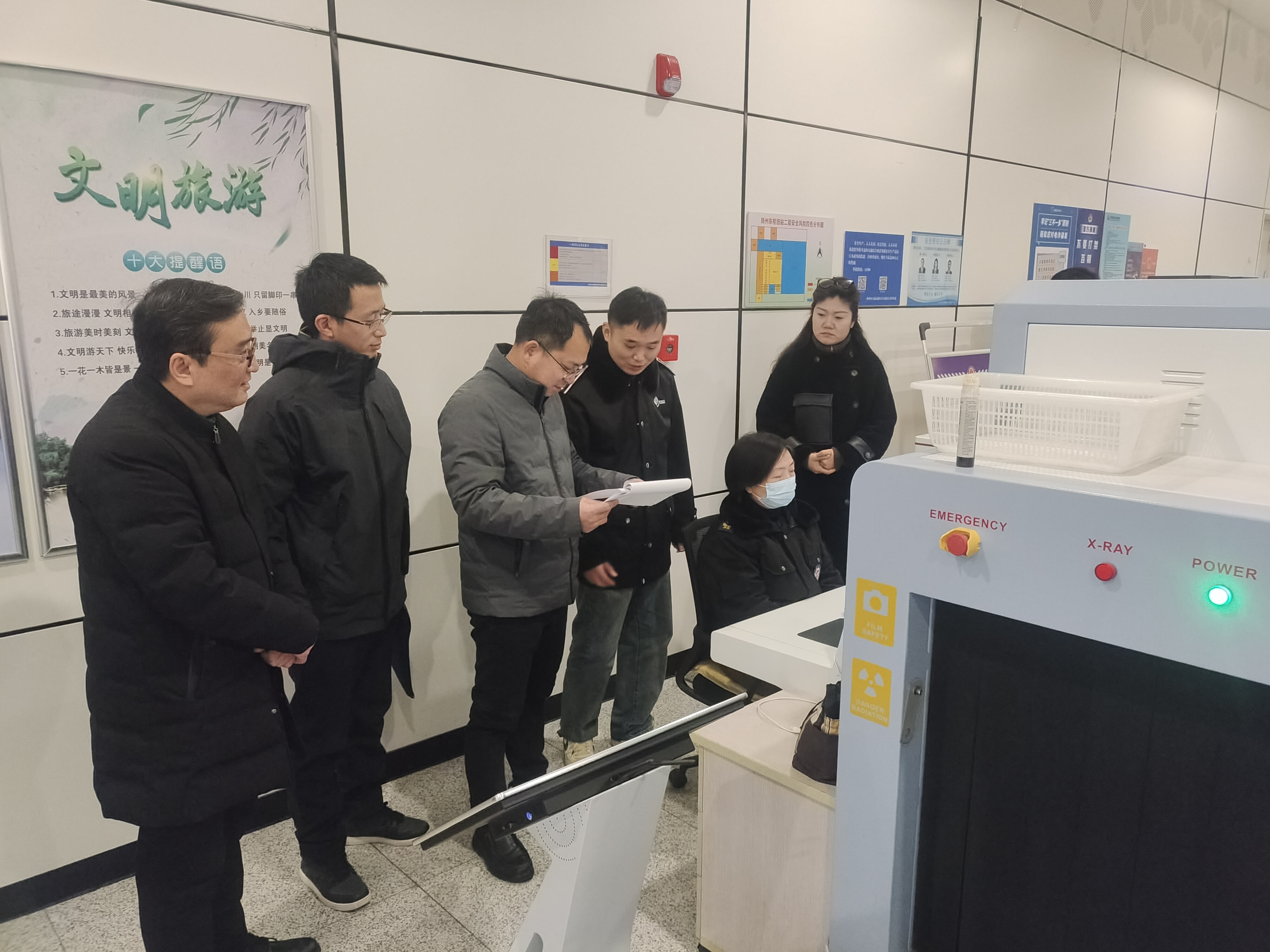 龔宇峰一行先后實(shí)地查看了售票、安檢、發(fā)車等重點(diǎn)區(qū)域,仔細(xì)翻閱了危險(xiǎn)品查堵、消防點(diǎn)檢等臺(tái)賬記錄,詳細(xì)聽取了車站負(fù)責(zé)人關(guān)于春運(yùn)期間客流研判、班次協(xié)調(diào)、安全防范、服務(wù)保障等工作匯報(bào)。