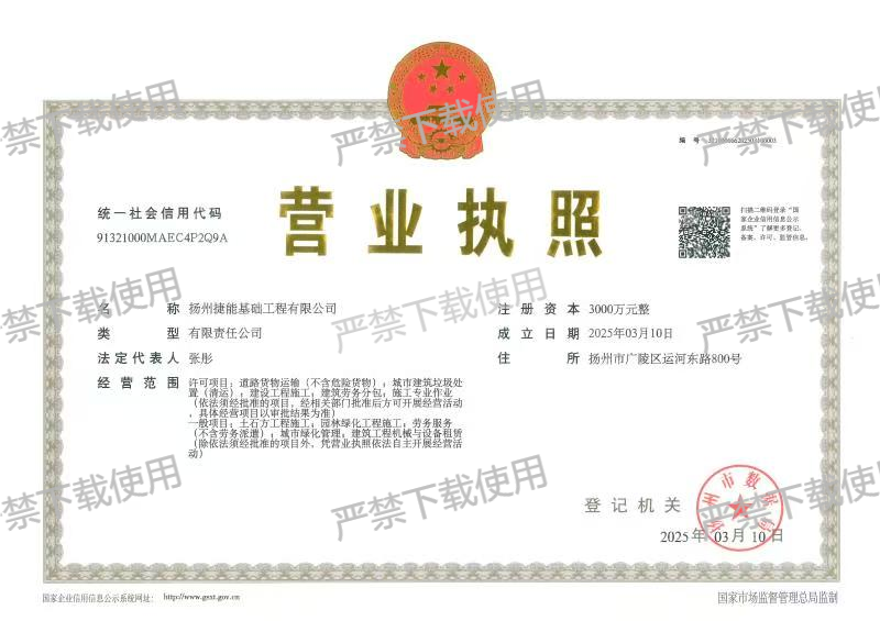 揚州捷能基礎(chǔ)工程有限公司完成企業(yè)登記