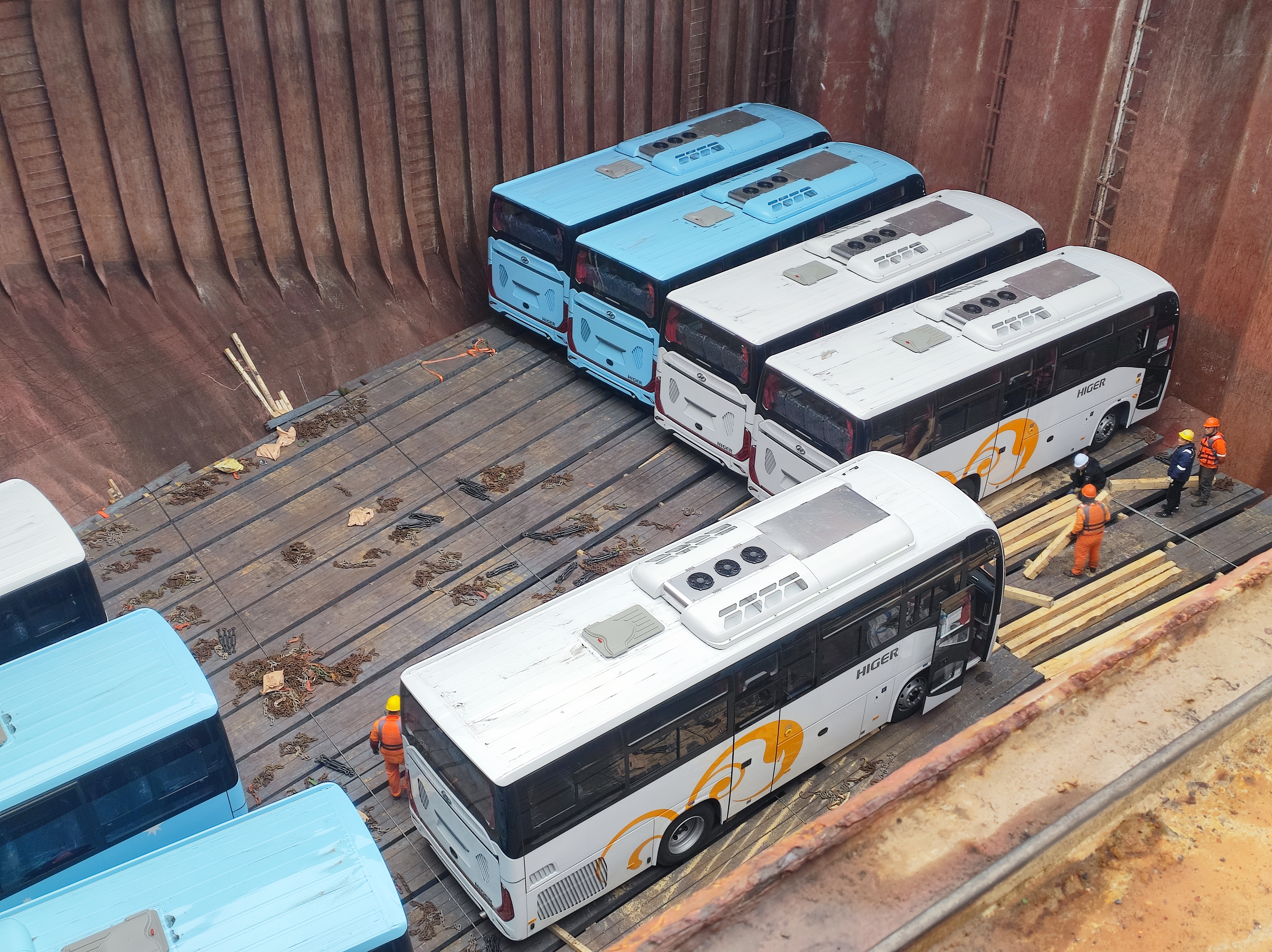 任務執(zhí)行期間,揚州港滾裝碼頭現(xiàn)場秩序井然。揚汽集團引導員全程在崗,有序指揮車輛進入待渡區(qū)。所有駕駛員均持證上崗,經(jīng)系統(tǒng)培訓后,憑借豐富的大車駕駛經(jīng)驗,在狹窄的碼頭通道與船艙內(nèi)實現(xiàn)精準操控、平穩(wěn)?俊U麄轉(zhuǎn)運過程歷經(jīng)車輛集結(jié)、安全檢查、有序登船及艙內(nèi)停放等多個環(huán)節(jié),全程銜接順暢、操作規(guī)范,未發(fā)生任何安全事故與作業(yè)延誤,切實做到了服務效率與運行安全同步提升。
